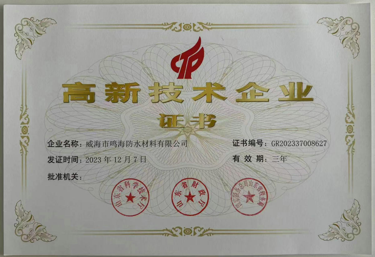 山東鳴海防水集團有限公司是科工貿為一體的綜合性企業,成立于一九九八年,下設三個子公司、一個分公司、五個辦事處,分別為山東宇鳴防水保溫有限公司、威海市鳴海防水材料有限公司、威海宇鳴新型材料有限公司,宇鳴科技有限公司是中國建筑協會理事單位,連年評為企業誠信單位。在全國成立了多個辦事機構,分別為新疆、銀川、蘭州、青海、青島、大連、濰坊、北京等多個城市。